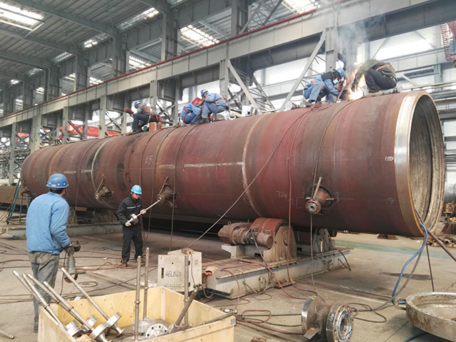 2月8日,裝車完畢等待發(fā)貨的設(shè)備是石島重工為山東德州某公司生產(chǎn)的用于化工方面的汽提塔設(shè)備。